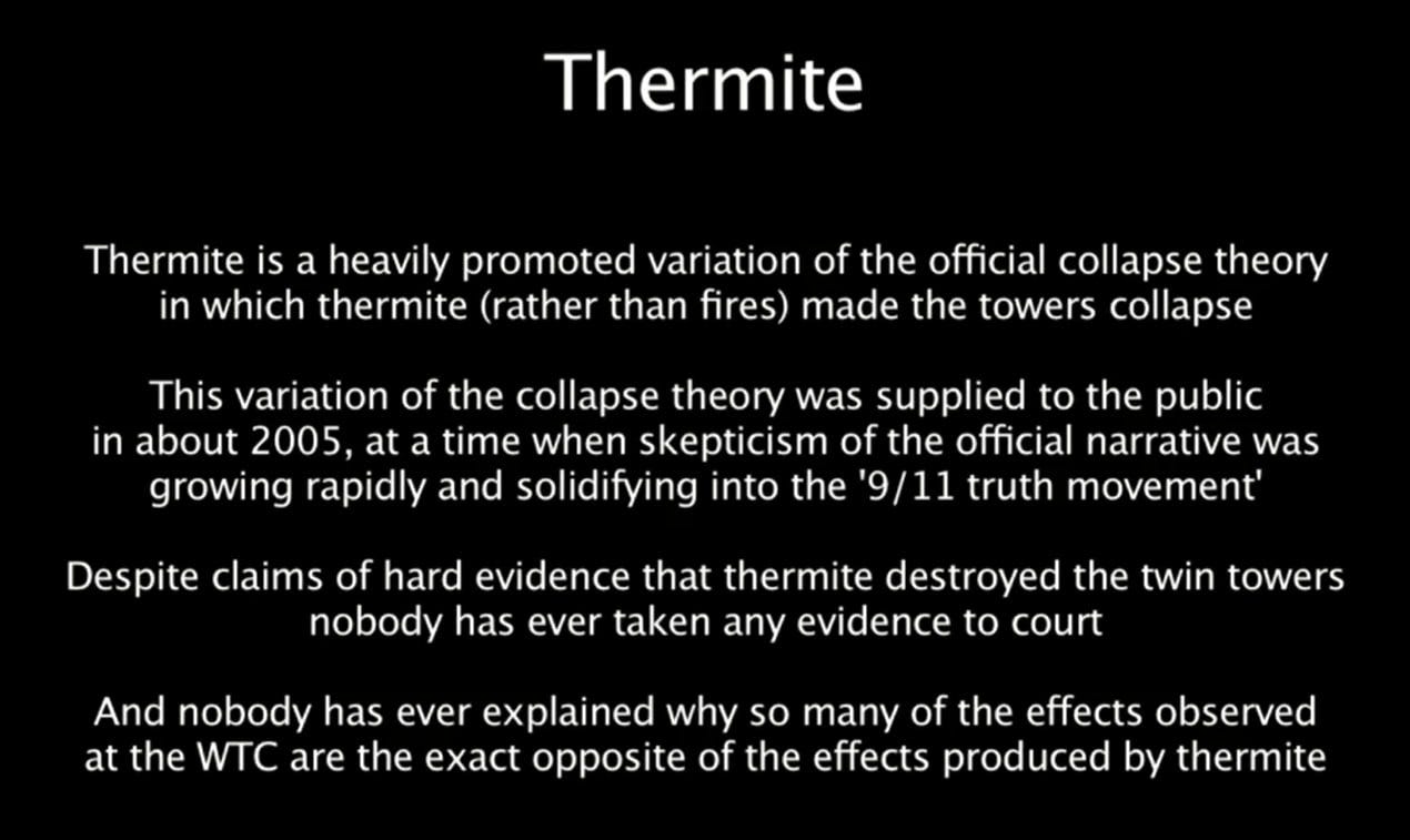 You can check out this great article by 911 Revisionist which goes into more detail on the thermite theory - 911 Revisionist - Ending The Nano Thermite Hypothesis