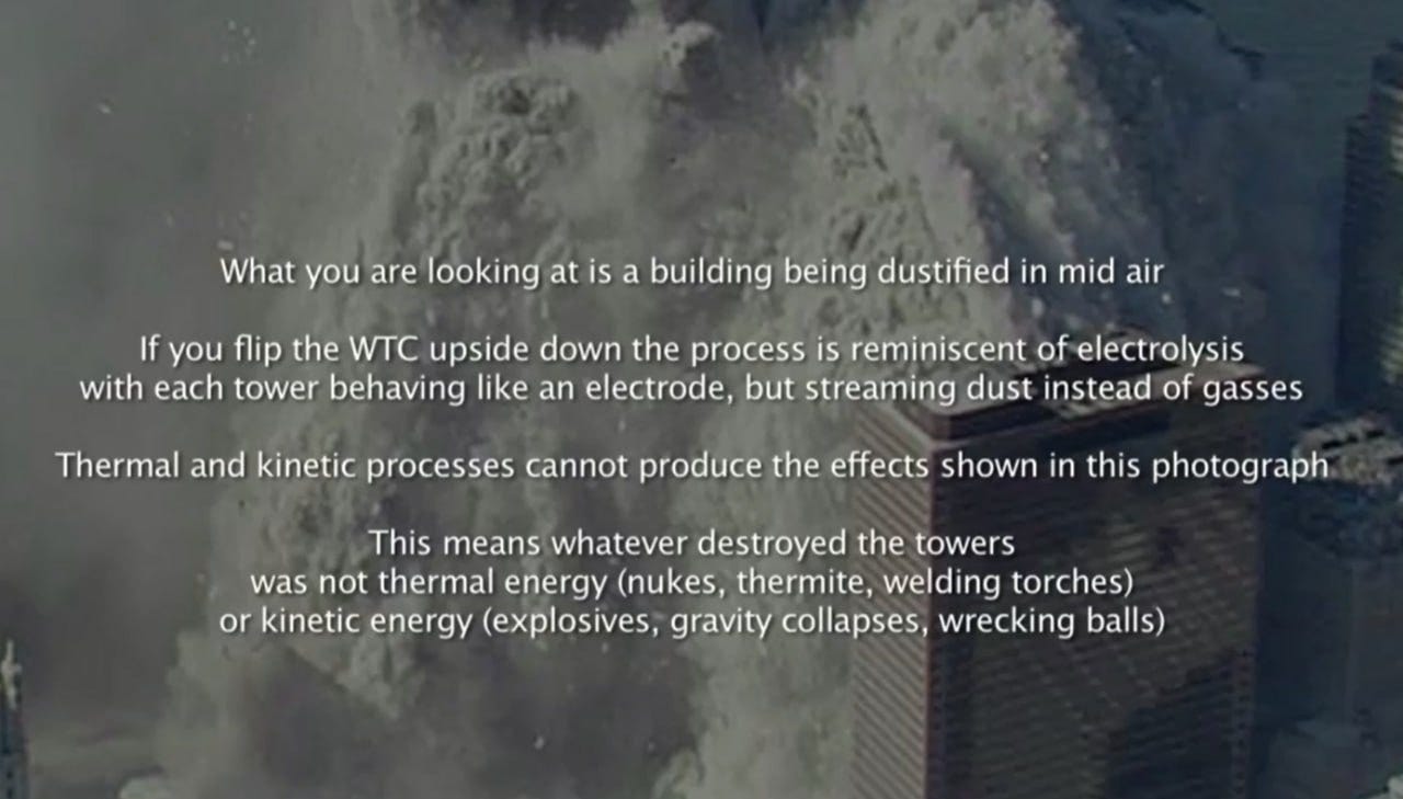 So what does Dr Judy Wood state caused this Dustification. Well it must have been done by some unconventional way. She never states that a ‘laser beam shot down the towers’. Instead she argues that the effects seen on 9/11 match what would happen in some form of field based energy technology were used - Directed Energy Weapon.